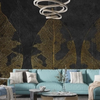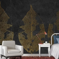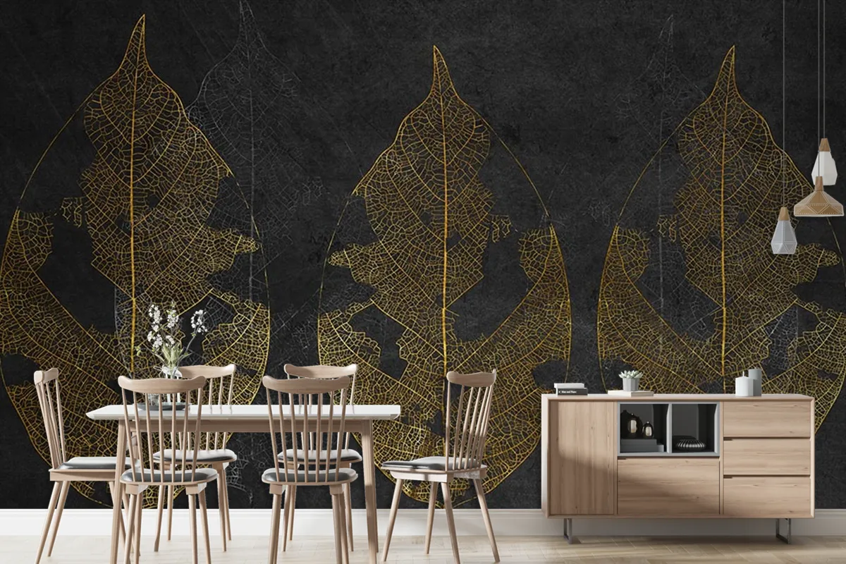 Büyük Gold Tonlarında Yaprak Desenli Duvar Kağıdı