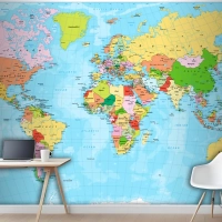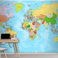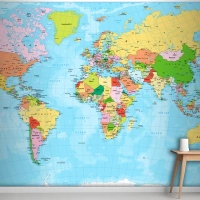 Büyük Harflerle Detaylı Siyasi Dünya Haritası Duvar Kağıdı