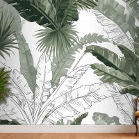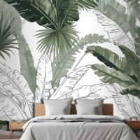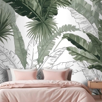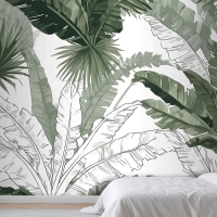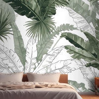 Büyük Tropikal Yapraklı Dikişsiz Desen Yatak Odası Duvar Kağıdı
