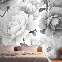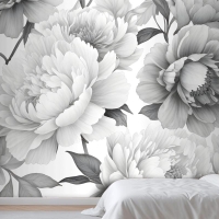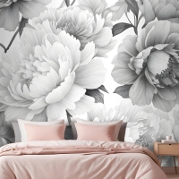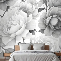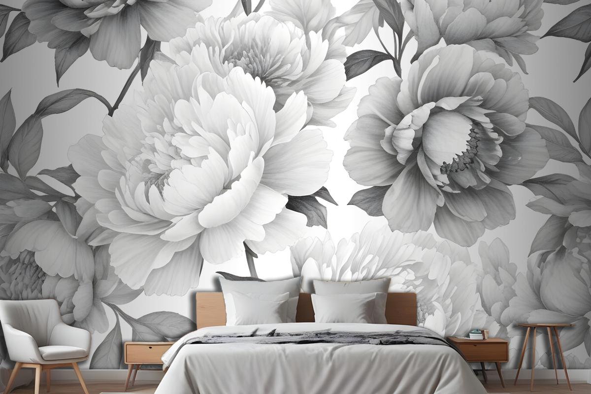 Büyük Yemyeşil Ile Siyah Beyaz Çiçek Desenli Yatak Odası