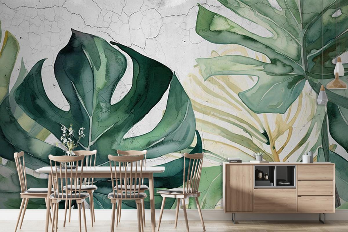 Büyük Yeşil Tropikal Yapraklar Duvar Kağıdı