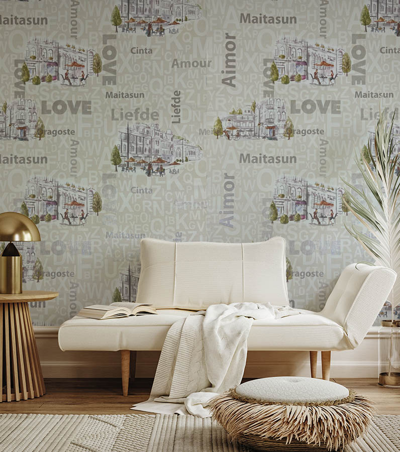 Cafe Harfli Şehirli Krem 16 M2 Duvar Kağıdı 10362-1