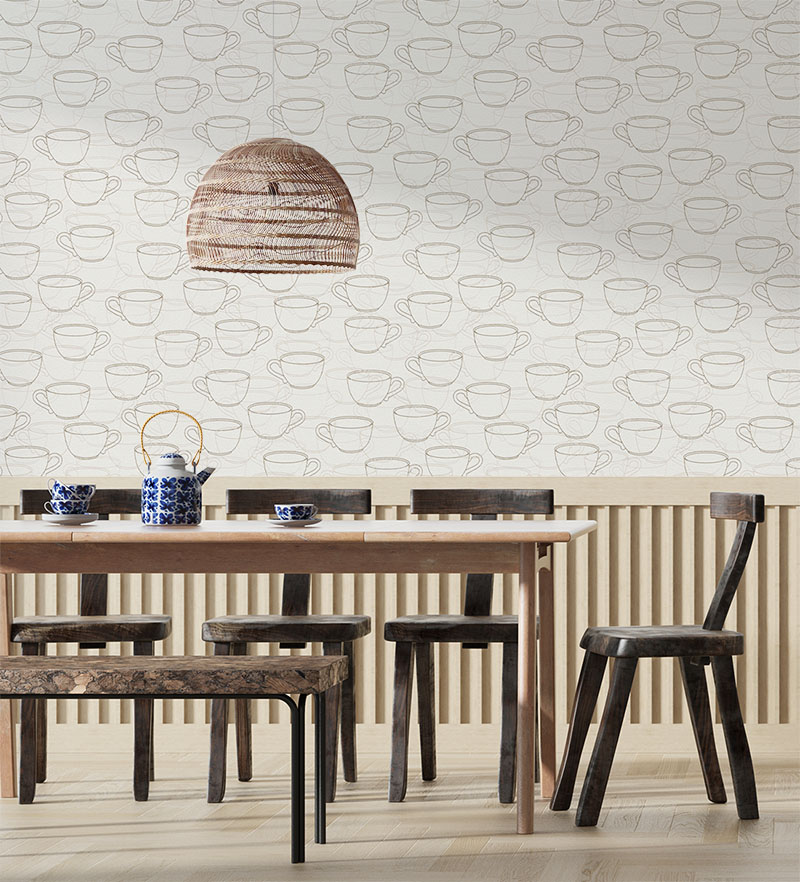 Cafe Tarzı Krem Fincanlı Ucuz Duvar Kağıdı 53701