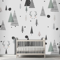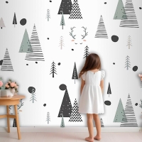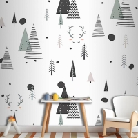 Çam Ağaçları Beyaz Arka Plan Çocuk Bebek Odası Duvar Kağıdı
