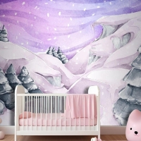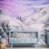 Çam Ağaçları Ile Suluboya Kış Manzarası Çocuk Odası Duvar Kağıdı