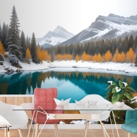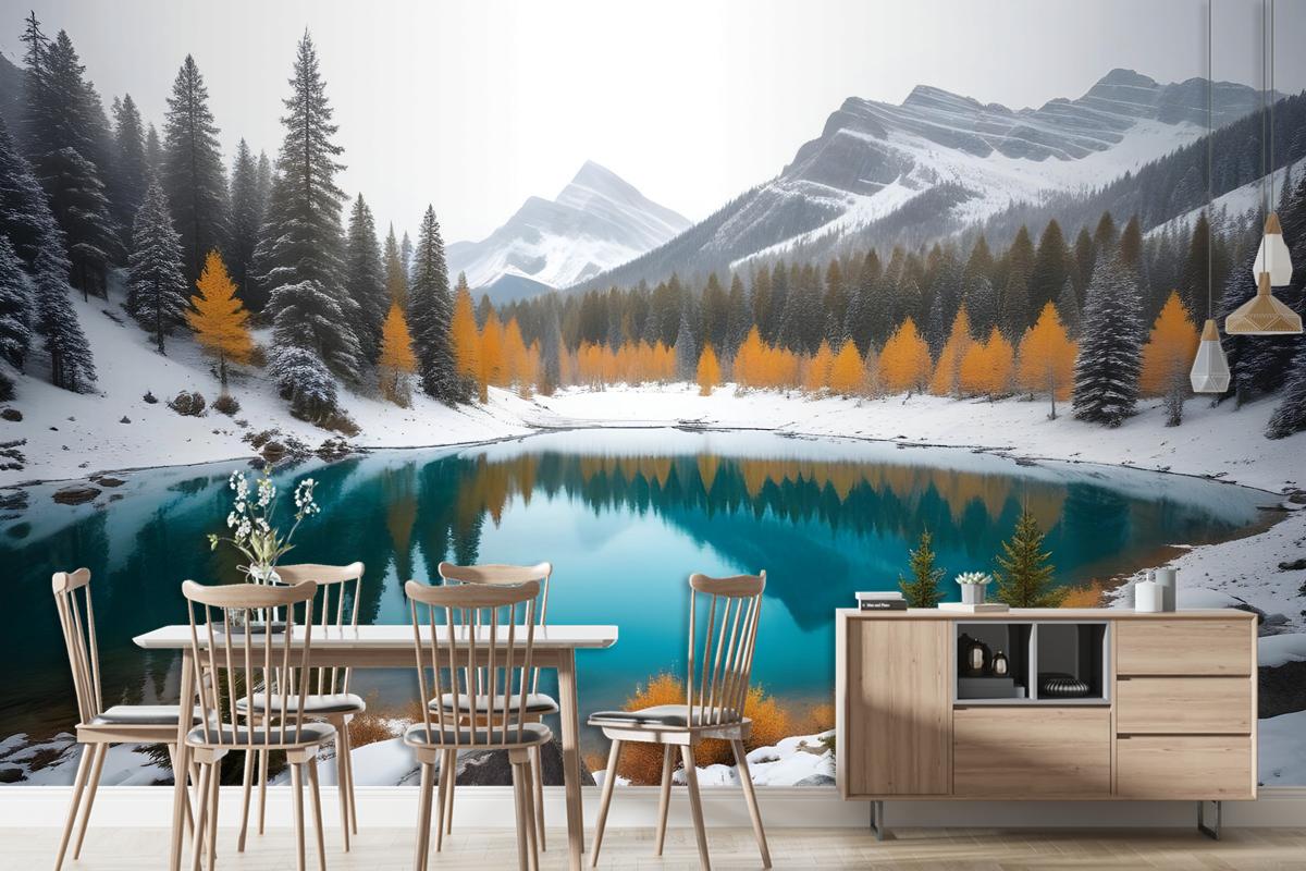 Çam Ormanı Ile Kış Gölü Manzarası Duvar Kağıdı