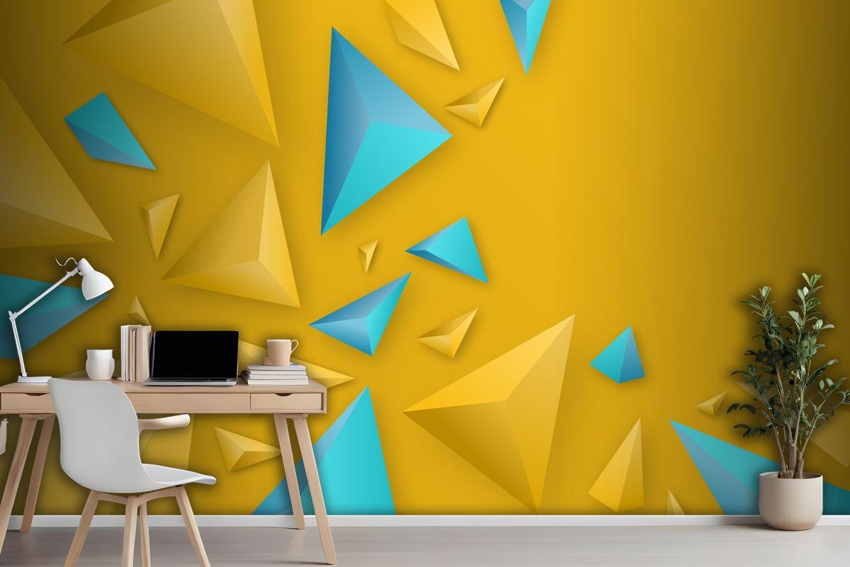 Canlı Renklerle 3D Üçgen Arka Plan Ofis Duvar Kağıdı