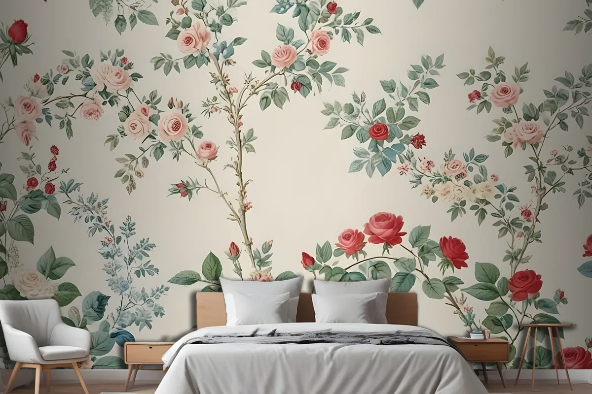 Çeşitli Çiçek Ve Bitkileri İçeren Detaylı Çiçek Yatak Odası Duvar Kağıdı Deseni