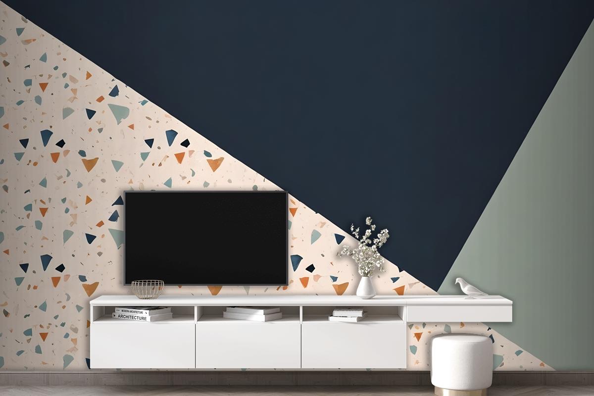 Çeşitli Şekillerde Mavi Ve Açık Yeşil Oturma Odası Salon Duvar Kağıdı Terrazzo Tarzı Desen