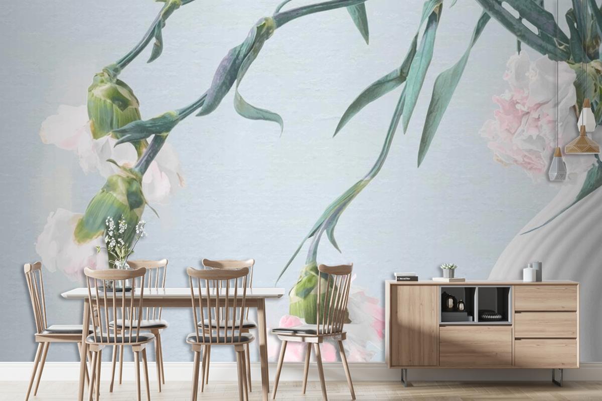 Çiçek Arka Plan Mavi Ve Pembe Karanfil Psychedelic Sanat Duvar Kağıdı