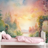 Çiçek Bahçesi Çocuk Odası Duvar Kağıdı İçeren Suluboya Arka Plan