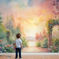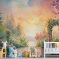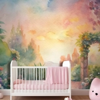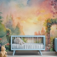 Çiçek Bahçesi Çocuk Odası Duvar Kağıdı İçeren Suluboya Arka Plan