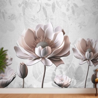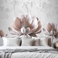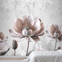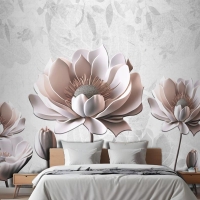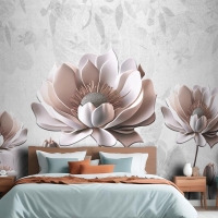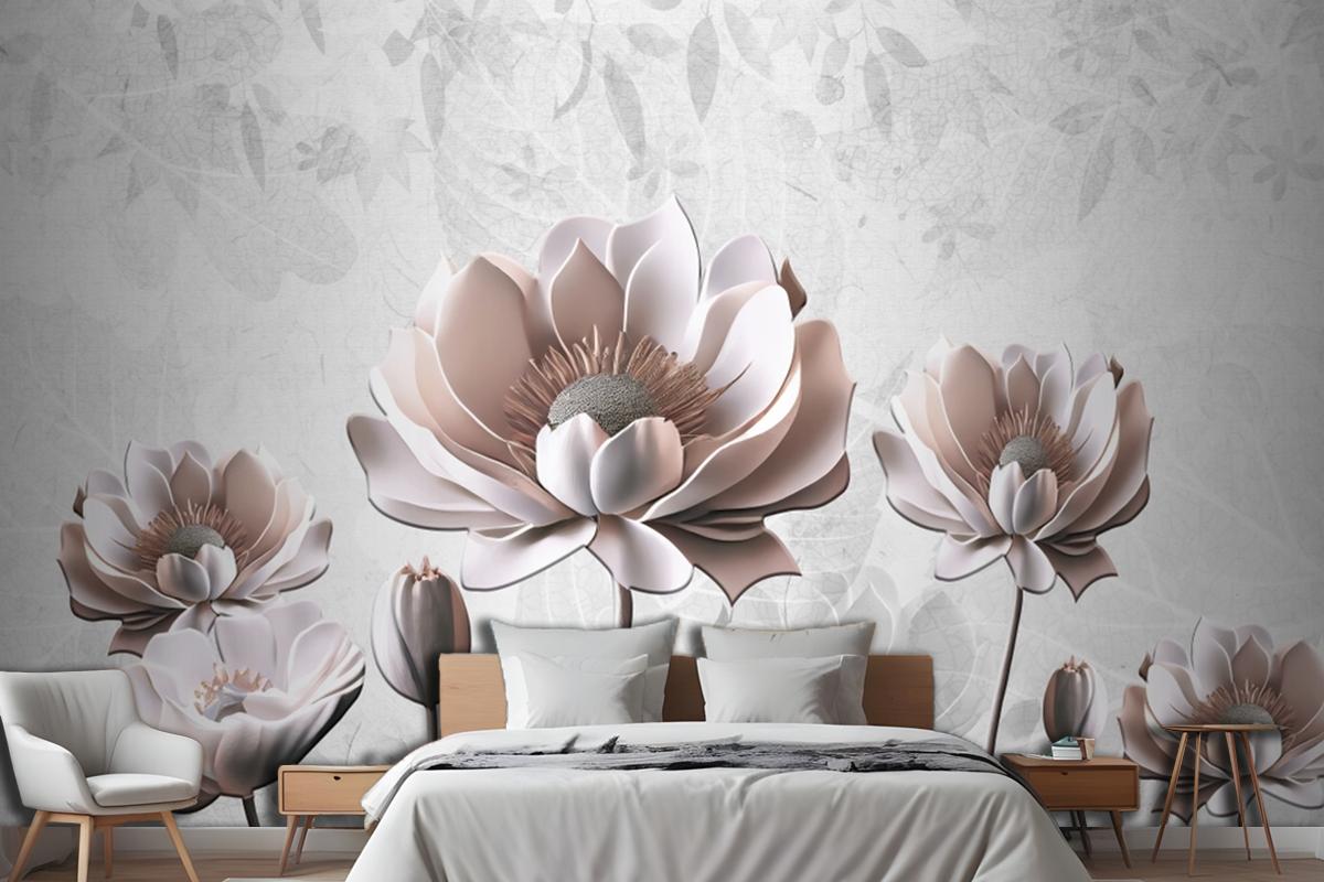 Çiçek Boyama Açık Gri Arka Plan Yatak Odası Duvar Kağıdı