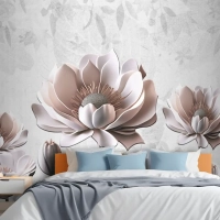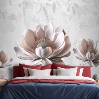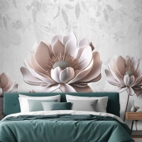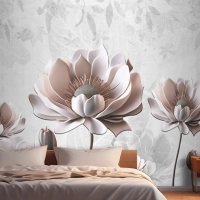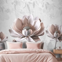 Çiçek Boyama Açık Gri Arka Plan Yatak Odası Duvar Kağıdı