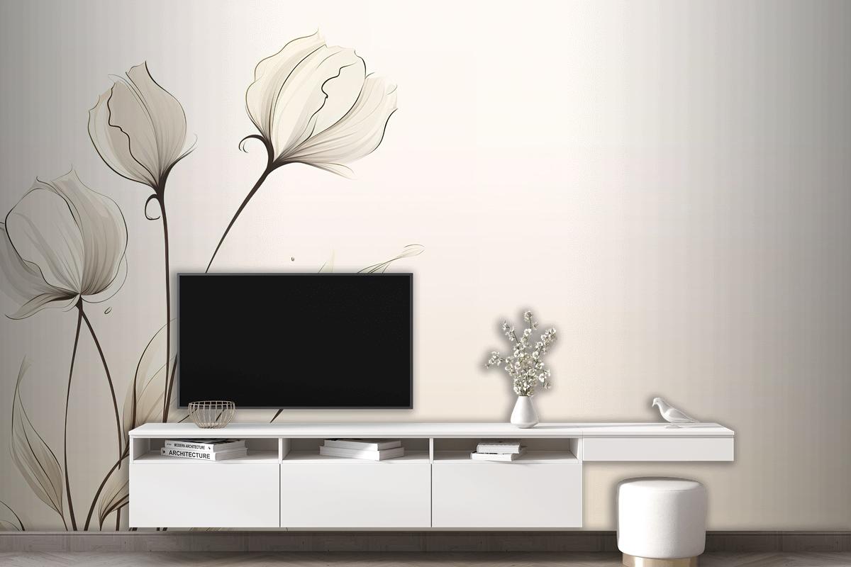Çiçek Çizimi Tv Arkası Duvar Kağıdı