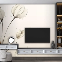 Çiçek Çizimi Tv Arkası Duvar Kağıdı