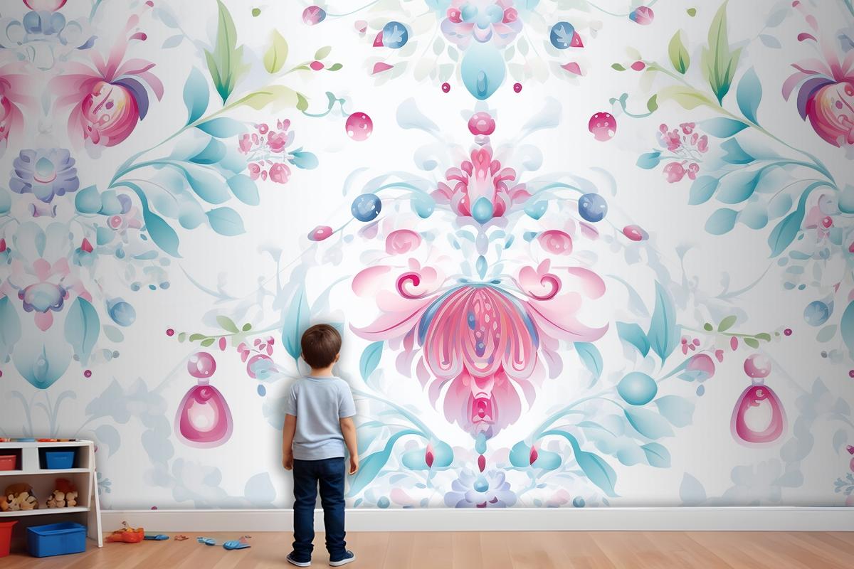 Çiçek Desenli Arka Plan Çocuk Odası Duvar Kağıdı