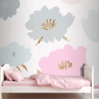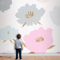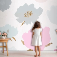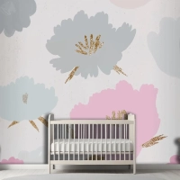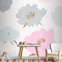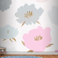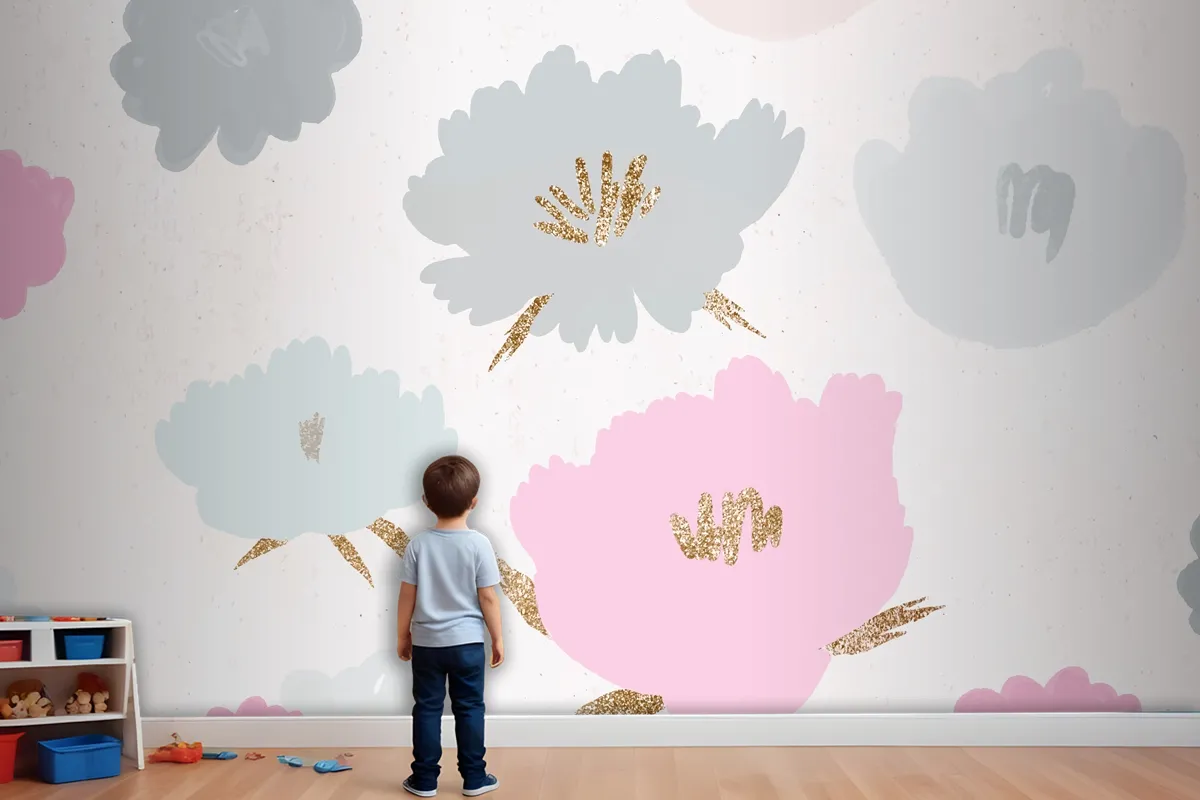 Çiçek Desenli Arka Plan Elle Çizilmiş Çocuk Odası Duvar Kağıdı