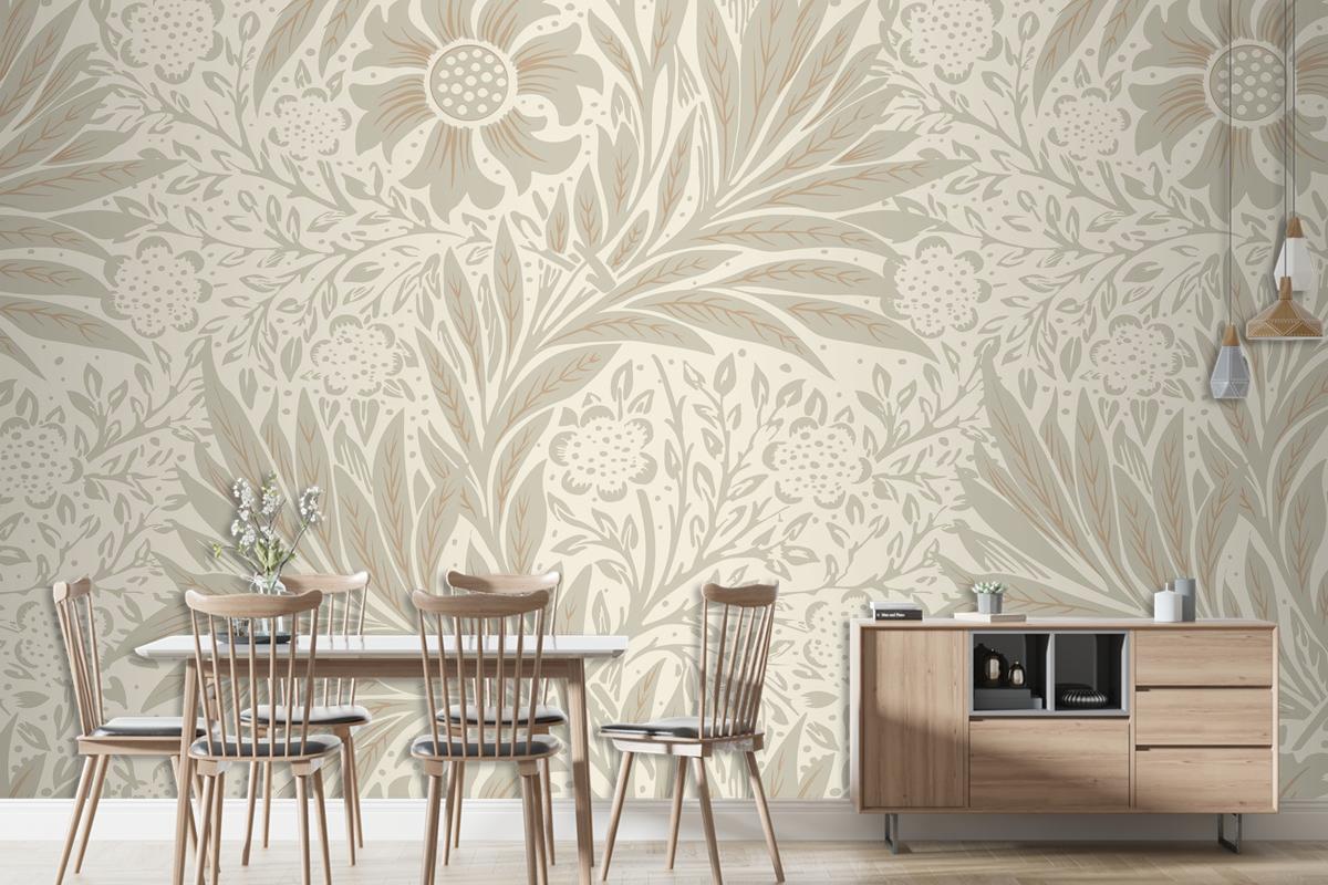 Çiçek Desenli Krem Vintage Duvar Kağıdı