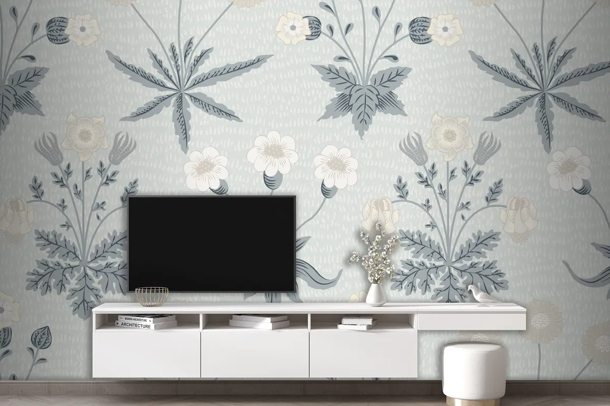 Çiçek Desenli Tasarım Oturma Odası Duvar Kağıdı