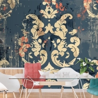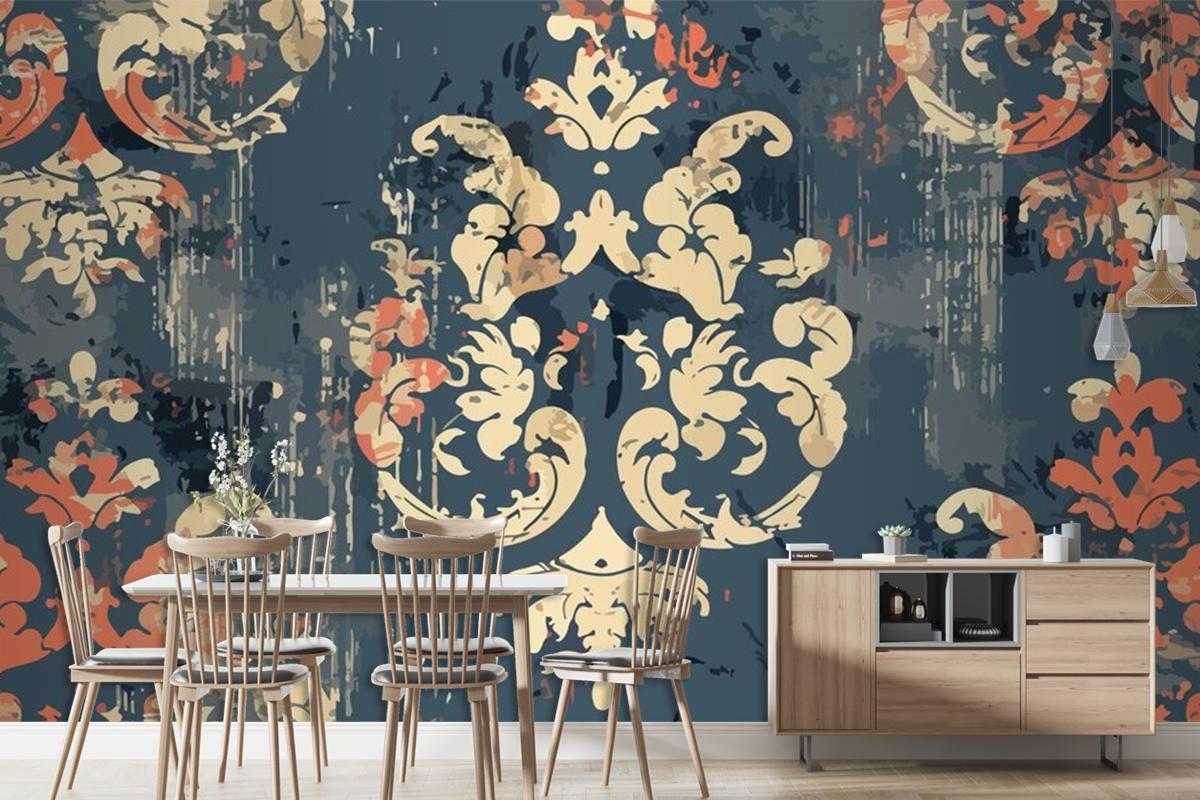 Çiçek Desenli Ve Altın Kırmızı Vintage Duvar Kağıdı