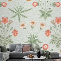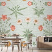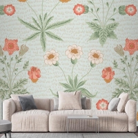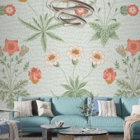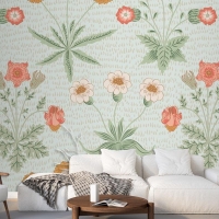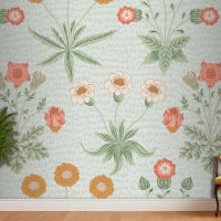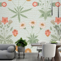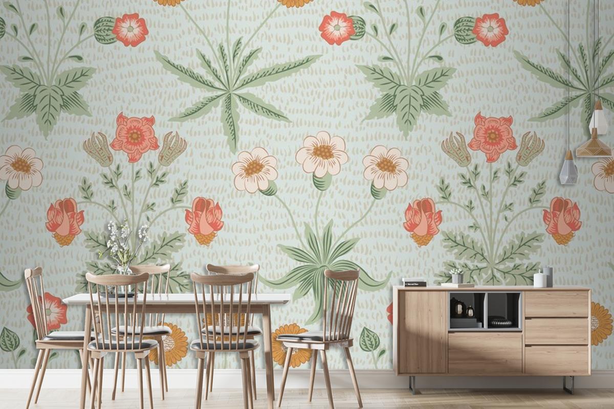 Çiçek Desenli Yeşil Duvar Kağıdı