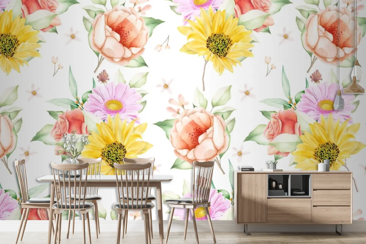 Çiçek Dikişsiz Desen Çiçek Açan Duvar Kağıdı