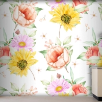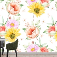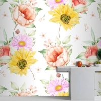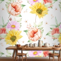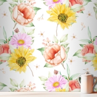 Çiçek Dikişsiz Desen Çiçek Açan Mutfak Duvar Kağıdı