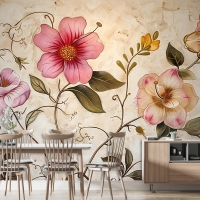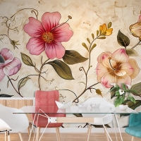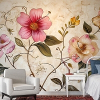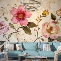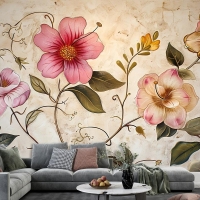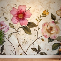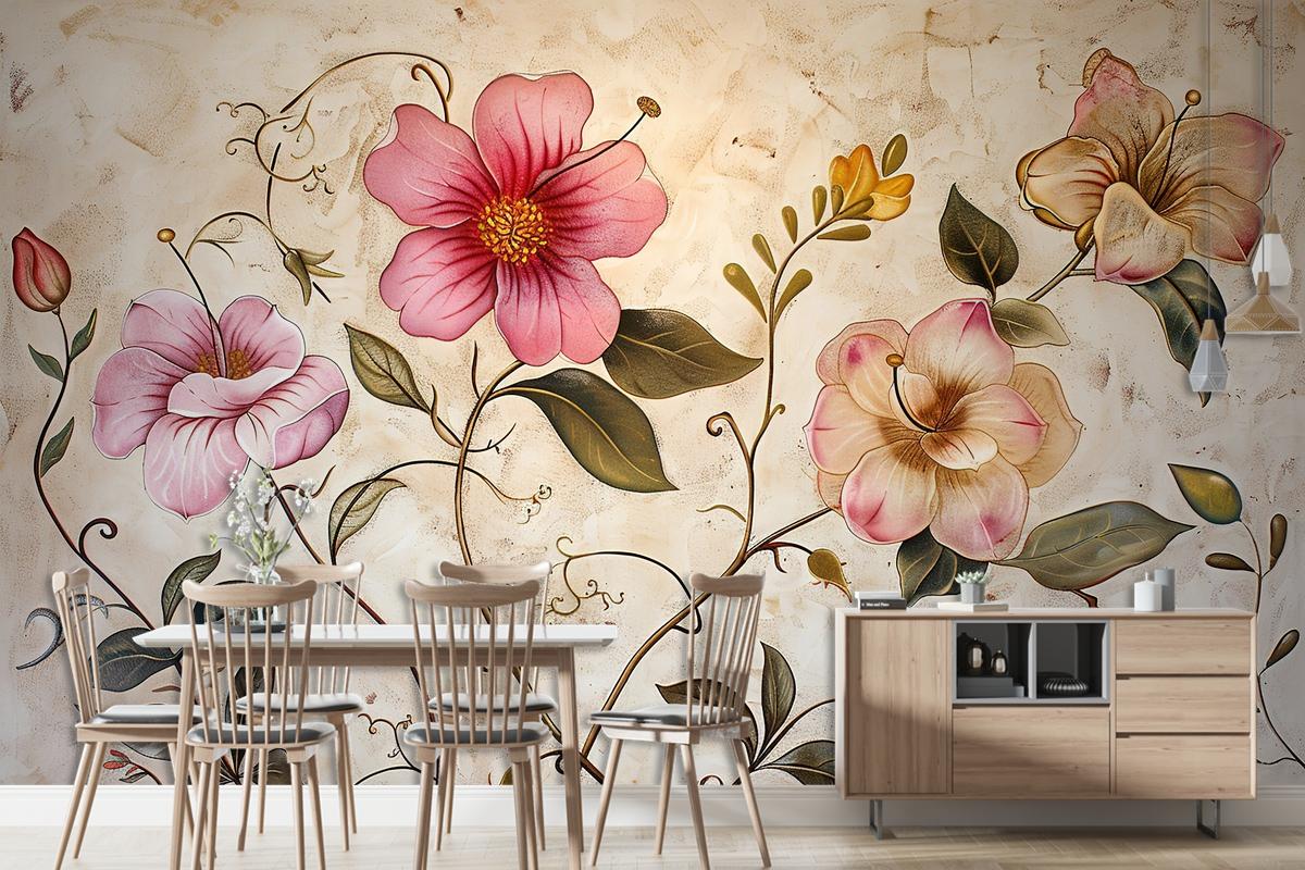 Çiçek Yaprak Ve Kalp Vintage Duvar Kağıdı
