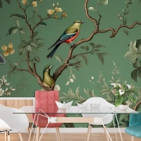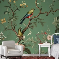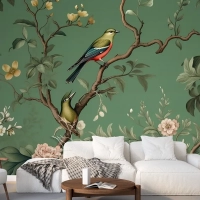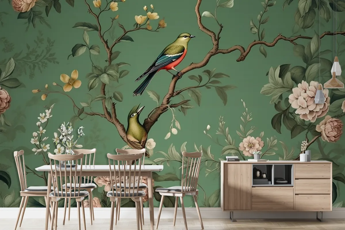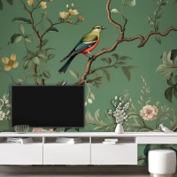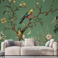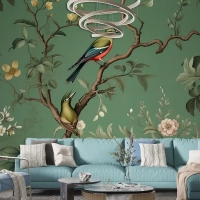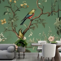Çiçekler Dallar Kuşlar Altın Fırça Darbeleri Duvar Kağıdı