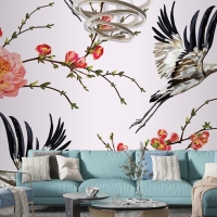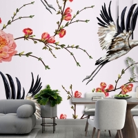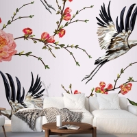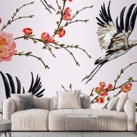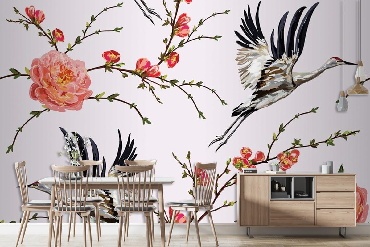 Çiçekler Ve Bitkiler Çiçekler Ve Kuşlar Sorunsuz Baskı Desenli Duvar Kağıdı