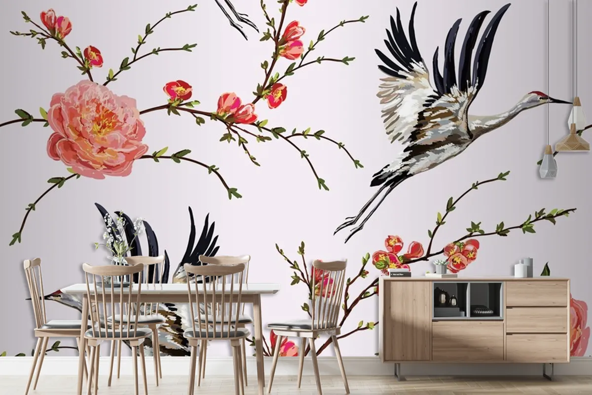 Çiçekler Ve Bitkiler Çiçekler Ve Kuşlar Sorunsuz Baskı Desenli Duvar Kağıdı