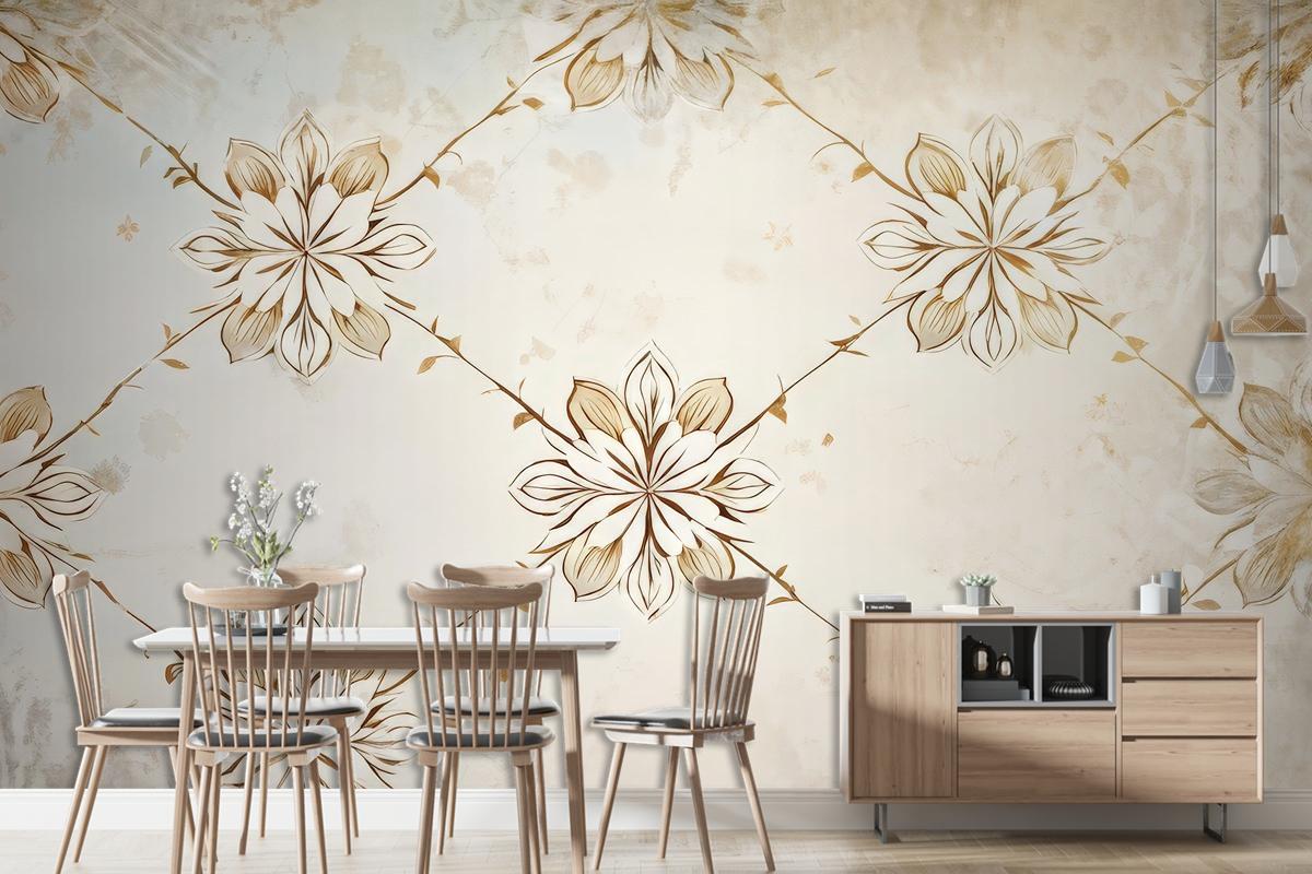 Çiçekler Ve Çiçek Öğeleri Içeren Soyut Vintage Duvar Kağıdı