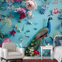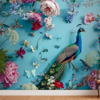 Çiçekler Ve Kelebeklerle Çevrelenmiş Tavus Kuşu Duvar Kağıdı