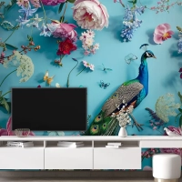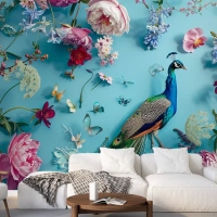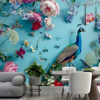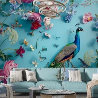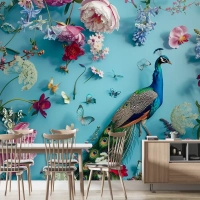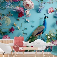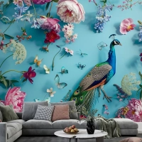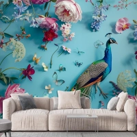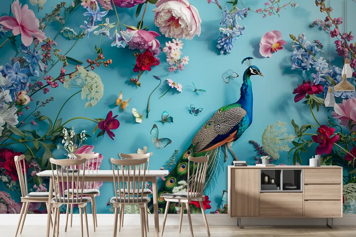 Çiçekler Ve Kelebeklerle Çevrelenmiş Tavus Kuşu Duvar Kağıdı