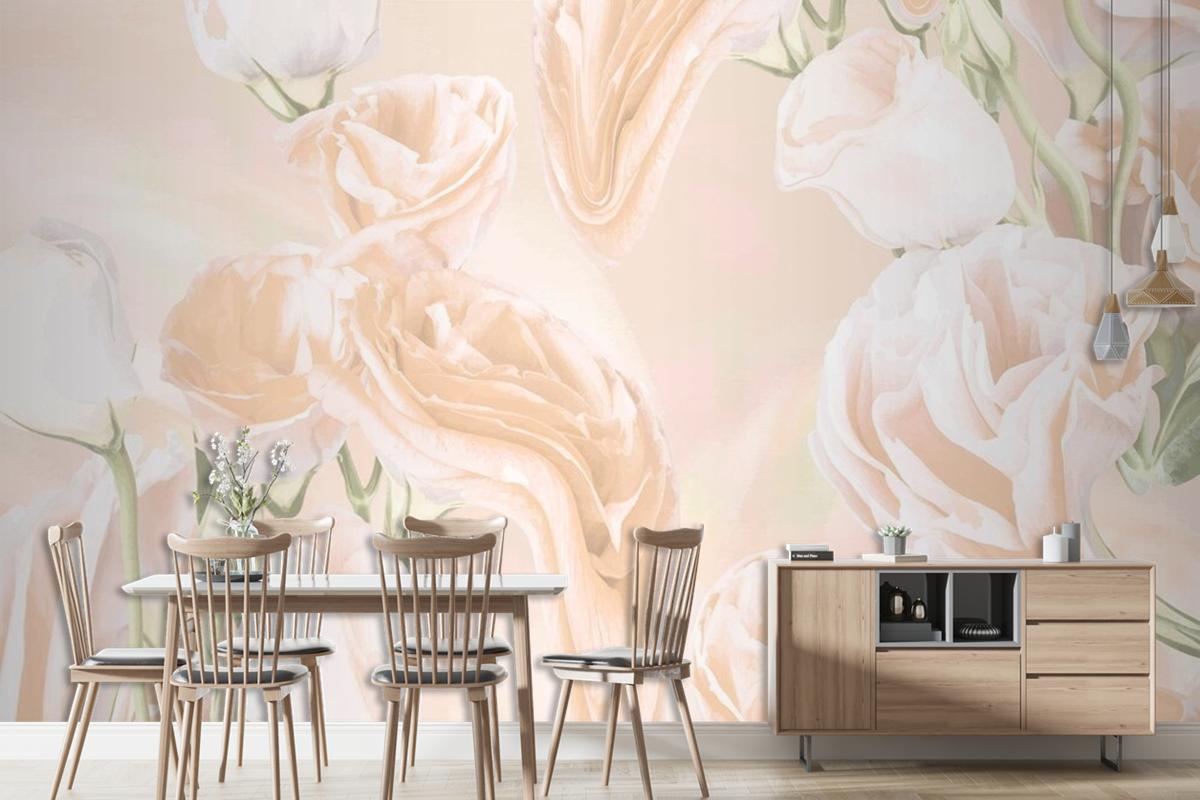 Çiçekli Arka Plan Bej Gül Psychedelic Sanat Duvar Kağıdı