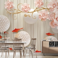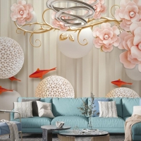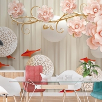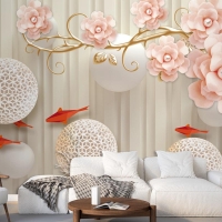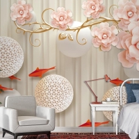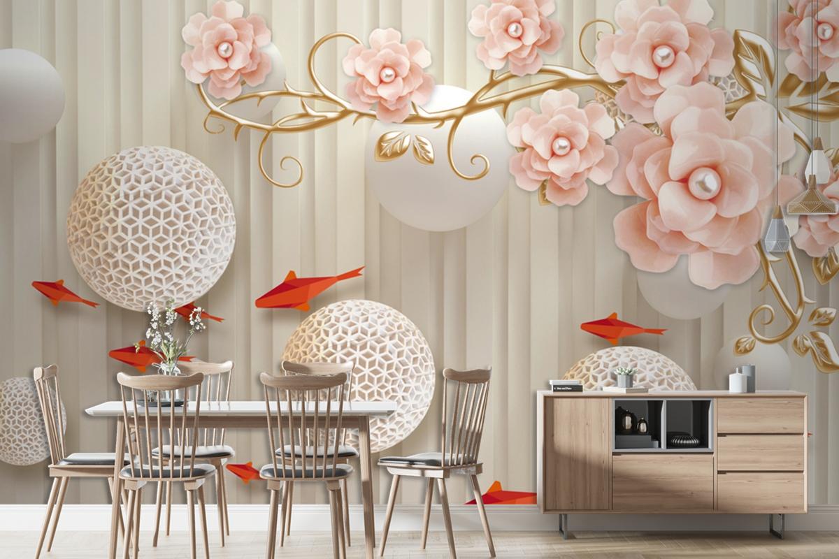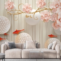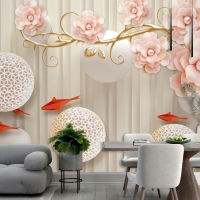 Çiçekli Balık Arka Planlı 3D Duvar Kağıdı