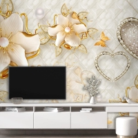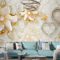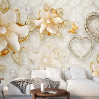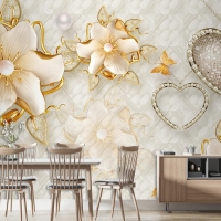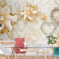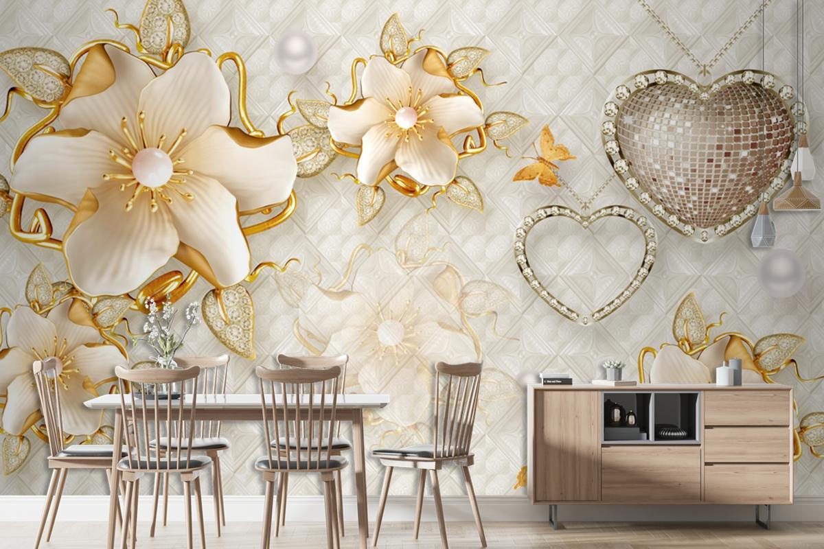 Çiçekli Kalp Altın Arka Planlı 3D Duvar Kağıdı