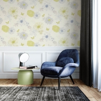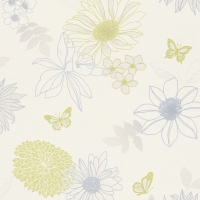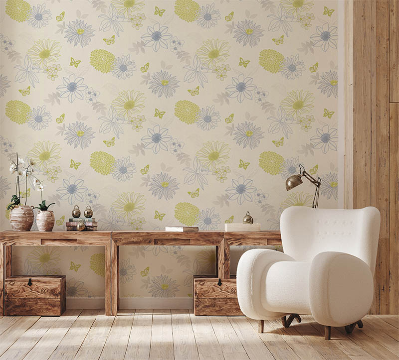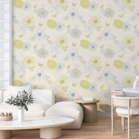Çiçekli Kelebekli Mavi Yeşil Ucuz Duvar Kağıdı 54249