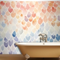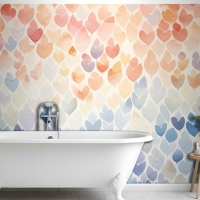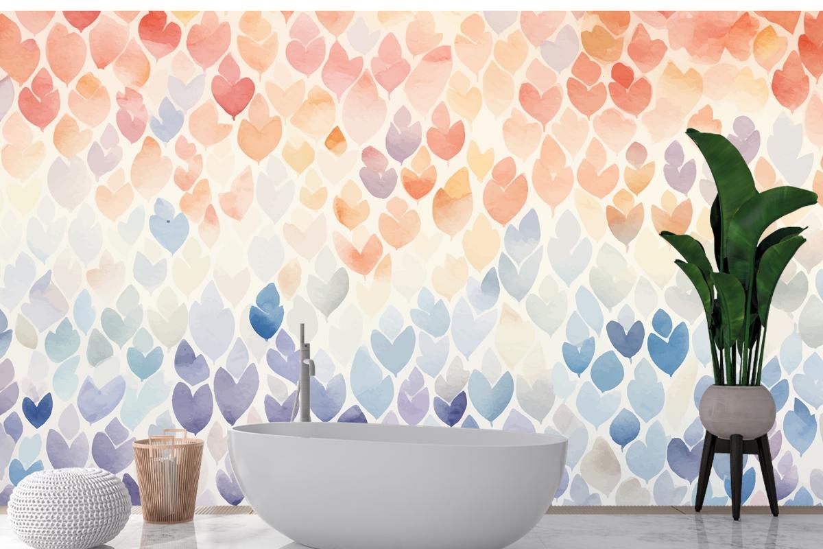 Çiçekli Suluboya Desen Banyo Duvar Kağıdı