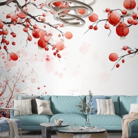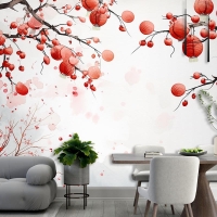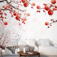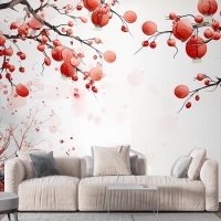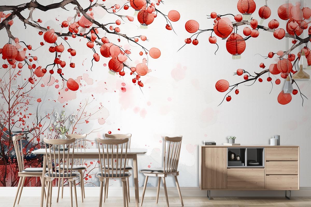 Çin Yeni Yılı Öğesinin Soyut Suluboya Dekoratif Duvar Kağıdı