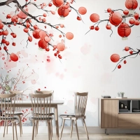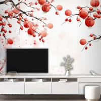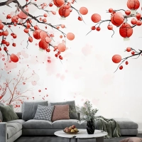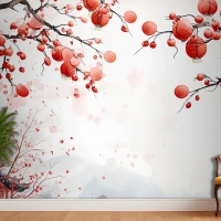 Çin Yeni Yılı Öğesinin Soyut Suluboya Dekoratif Duvar Kağıdı
