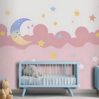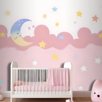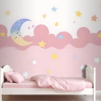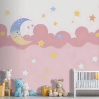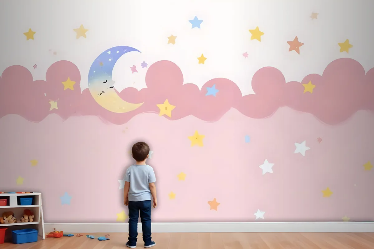 Çocuk Kız Pembe Gece Uyuyan Ay Çocuk Odası Duvar Kağıdı
