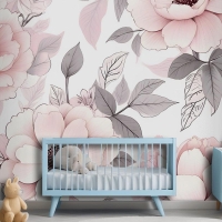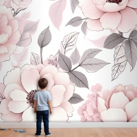 Çocuk Kreş Çiçek Pembe Gül Desenli Çocuk Odası Duvar Kağıdı