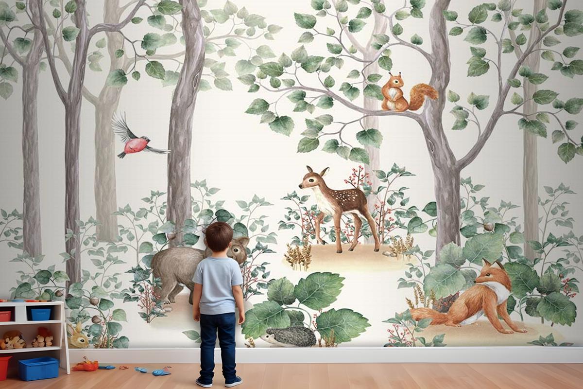 Çocuk Odaları Için Orman Ve Sevimli Hayvanlar Çocuk Odası Duvar Kağıdı