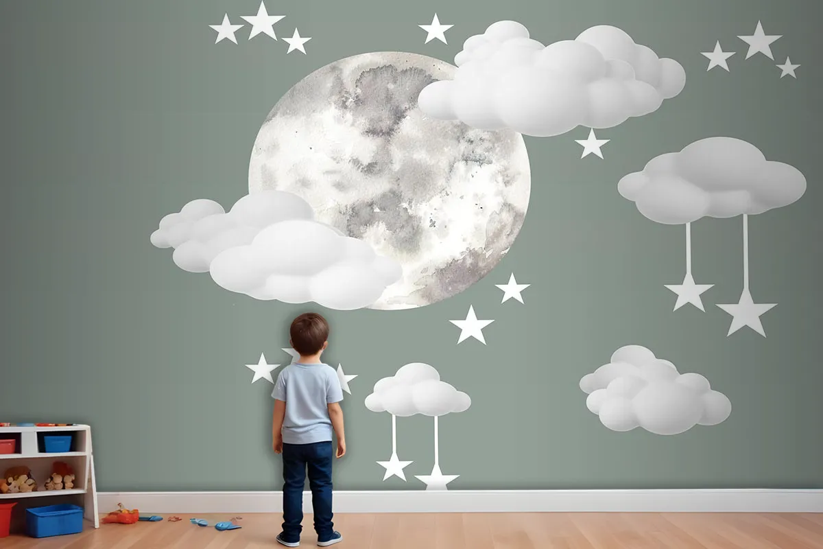 Çocuk Odası Bulutlu Bebek Odası Duvar Kağıdı