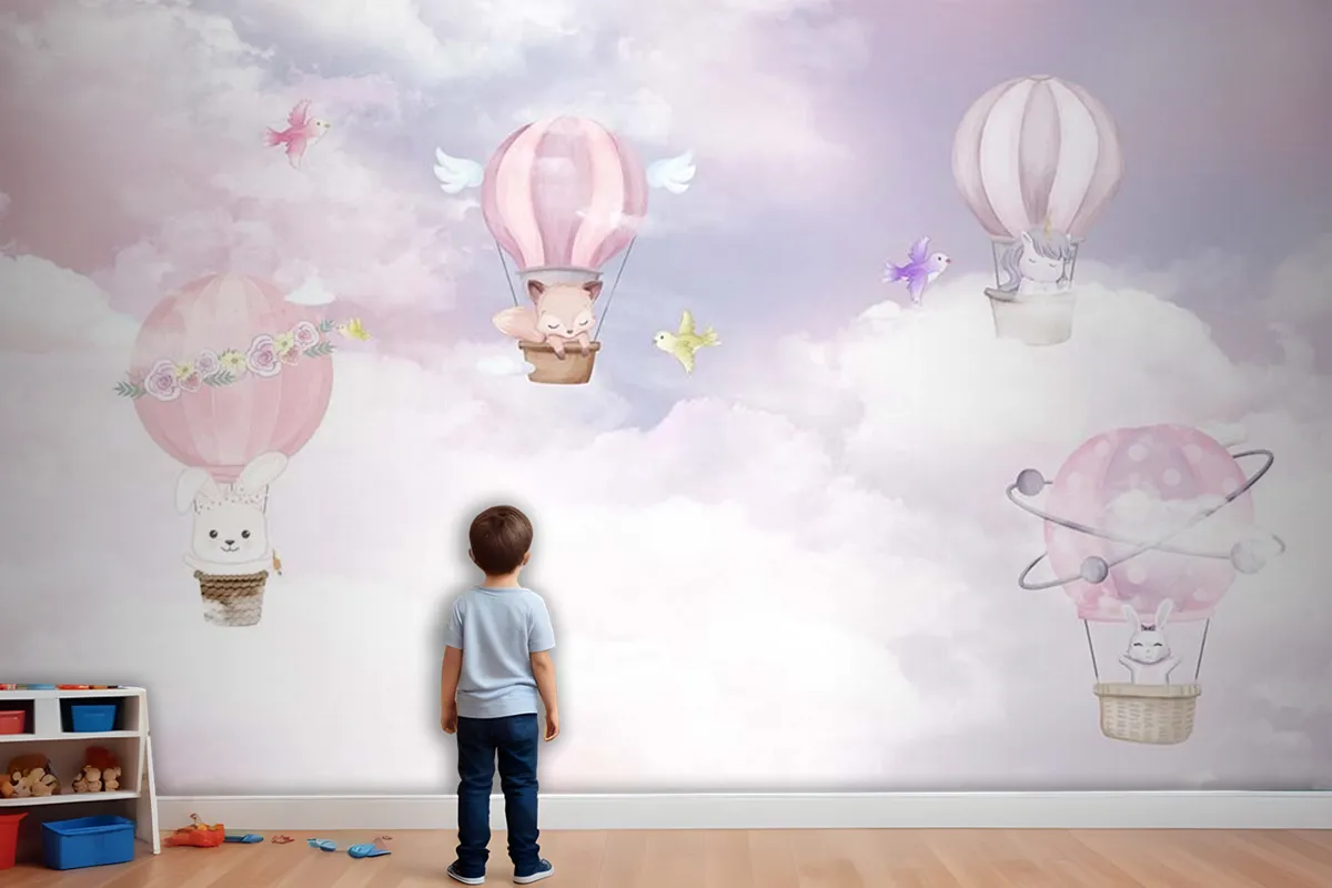 Çocuk Odası Duvar Kağıdı Balonlar Ve Sevimli Hayvanlar