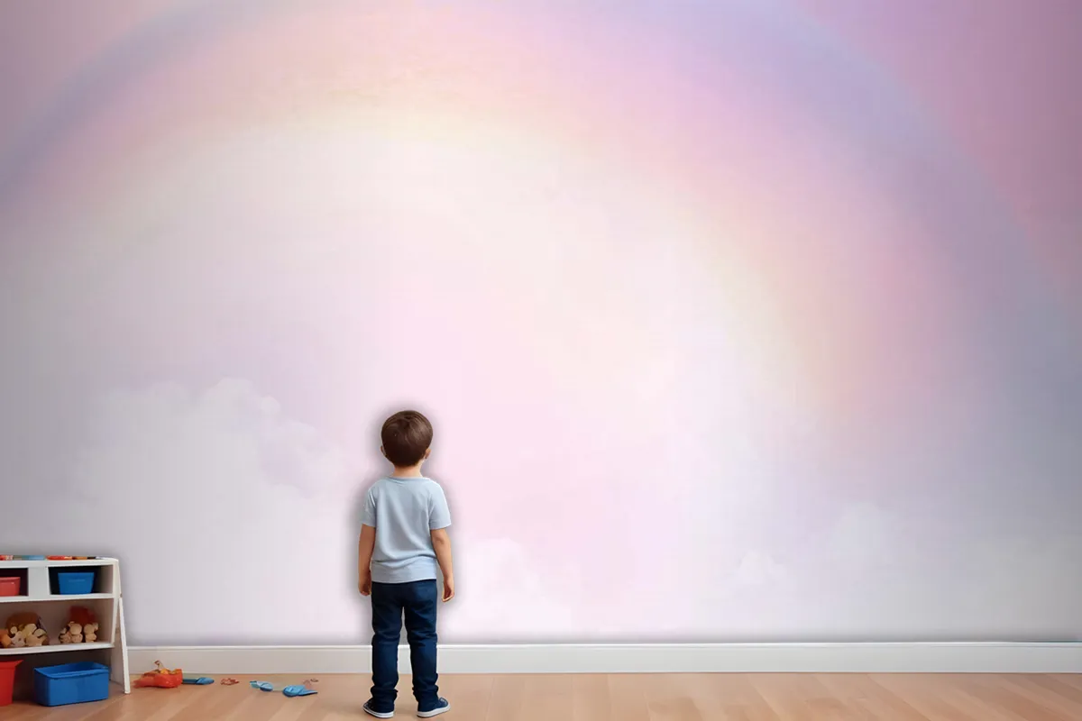 Çocuk Odası Duvar Kağıdı Gökkuşağı Ve Pembe Bulutlar