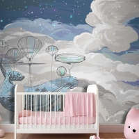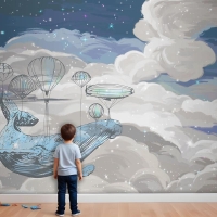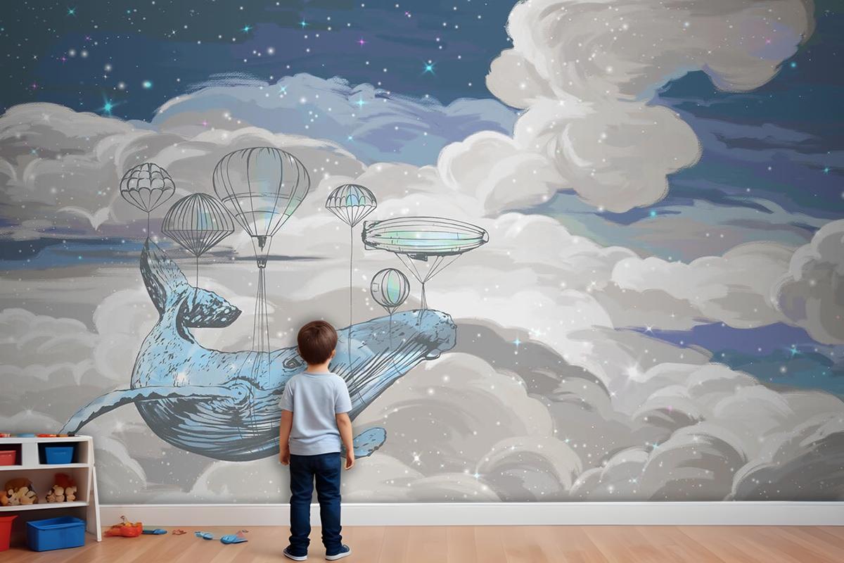 Çocuk Odası Duvar Kağıdı Gökyüzünde Uçan Balina