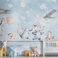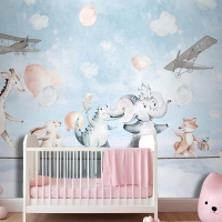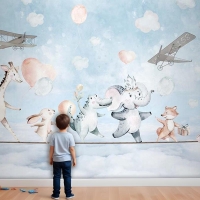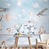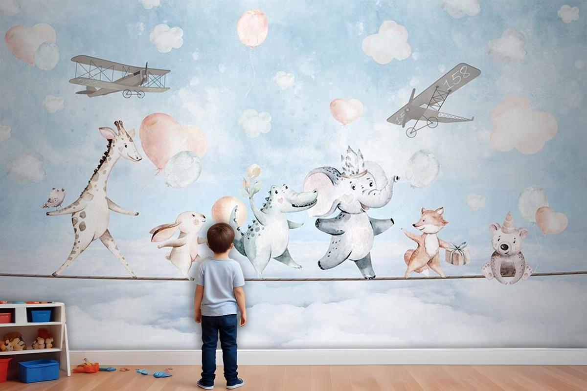 Çocuk Odası Duvar Kağıdı Ip Üzerinde Hayvanlar